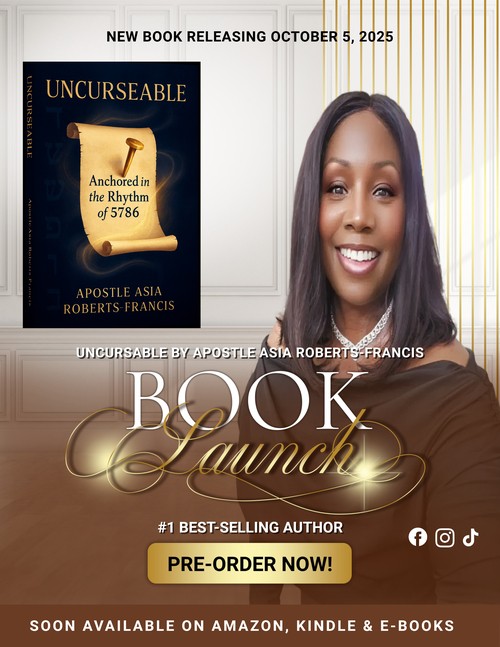 Step into divine rhythm and irreversible identity with Apostle Asia Roberts-Francis’ groundbreaking new release, Uncurseable: Anchored in the Rhythm of 5786. This prophetic blueprint unveils the spiritual architecture of the Hebraic year 5786, decoding the letters Tav, Shin, Peh, and Vav to reveal a verdict that cannot be reversed.
