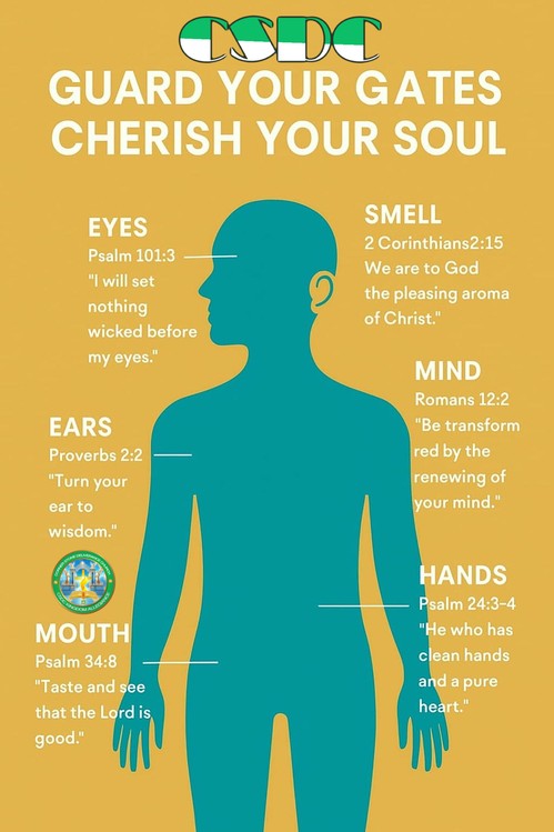 Beloved, the Lord has entrusted us with a precious treasure: our soul. It is the seat of our will, emotions, and intellect, and it is the very place where the Spirit of God desires to dwell richly. Yet the soul is vulnerable, for it is shaped by what enters through the gates of our body: the eyes, the ears, the mouth, the hands, the sense of smell, and above all, the mind.